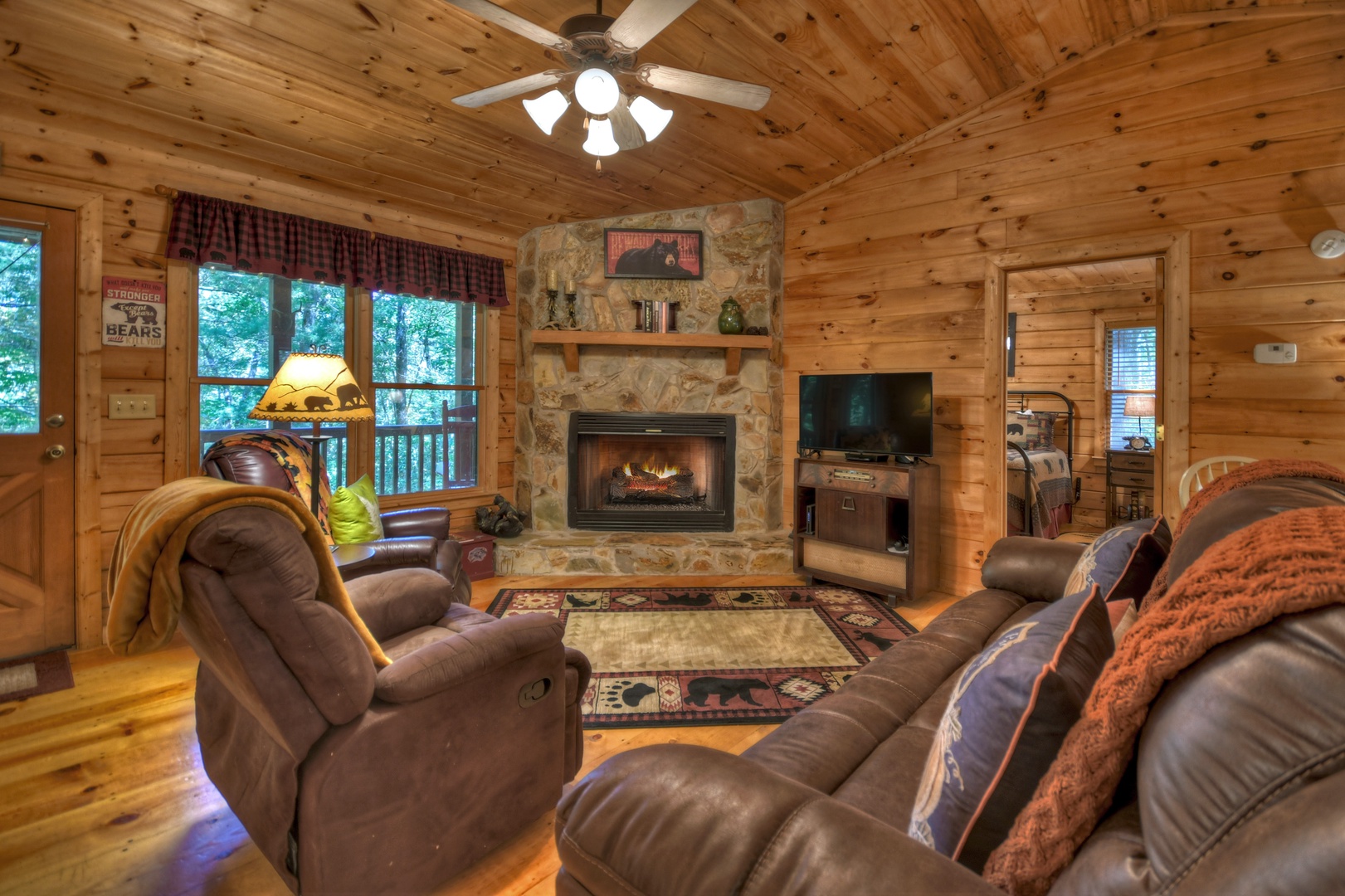 Bear Watch - Living Room with Wood-Burning Fireplace