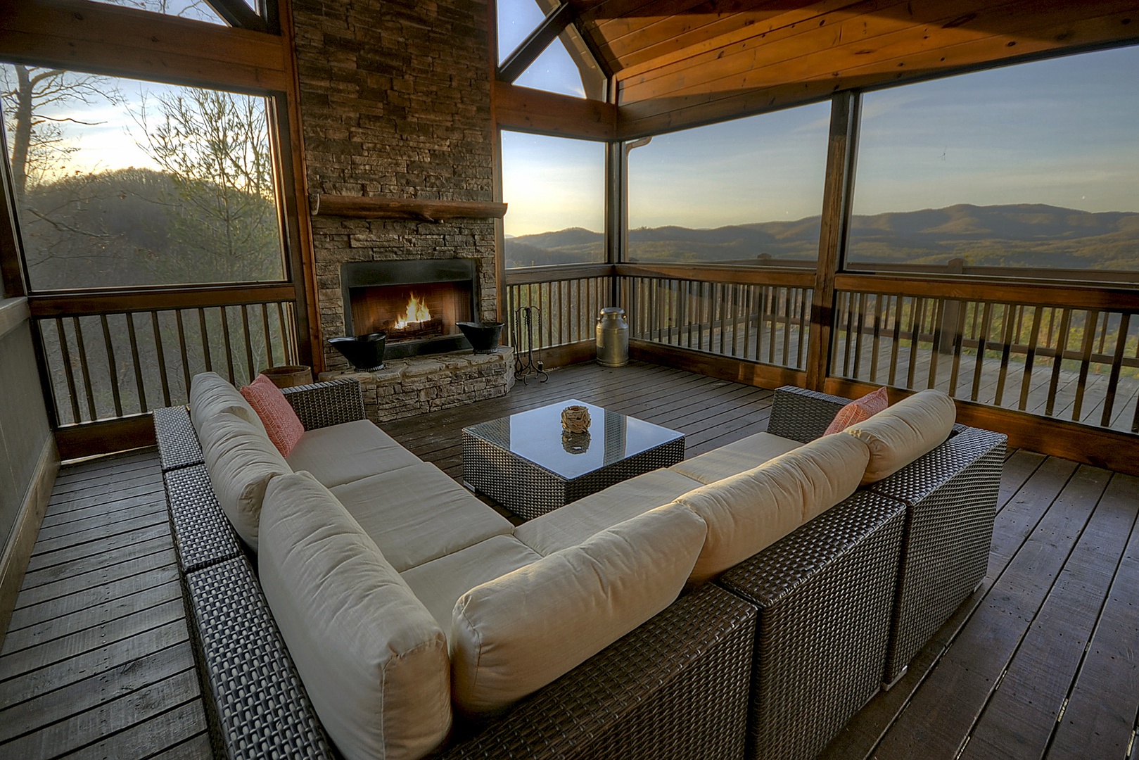 Bearcat Lodge - Screened in porch with outdoor seating and fireplace