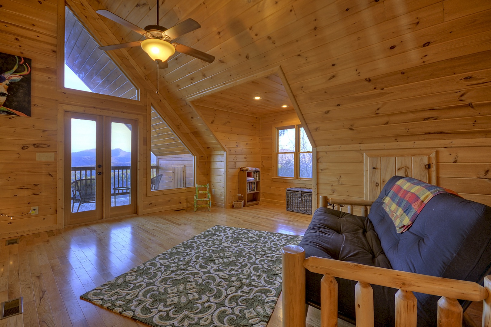 Bearcat Lodge- Upper level loft area with deck access