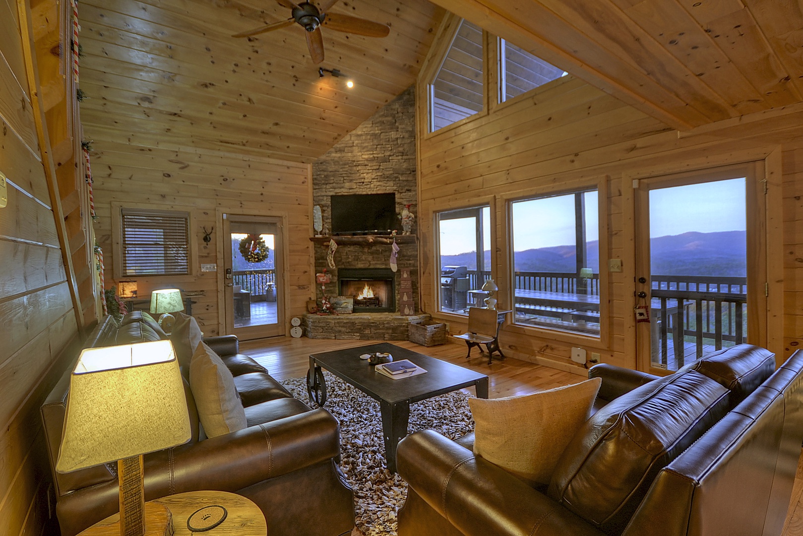 Bearcat Lodge - Entry level living room with deck access