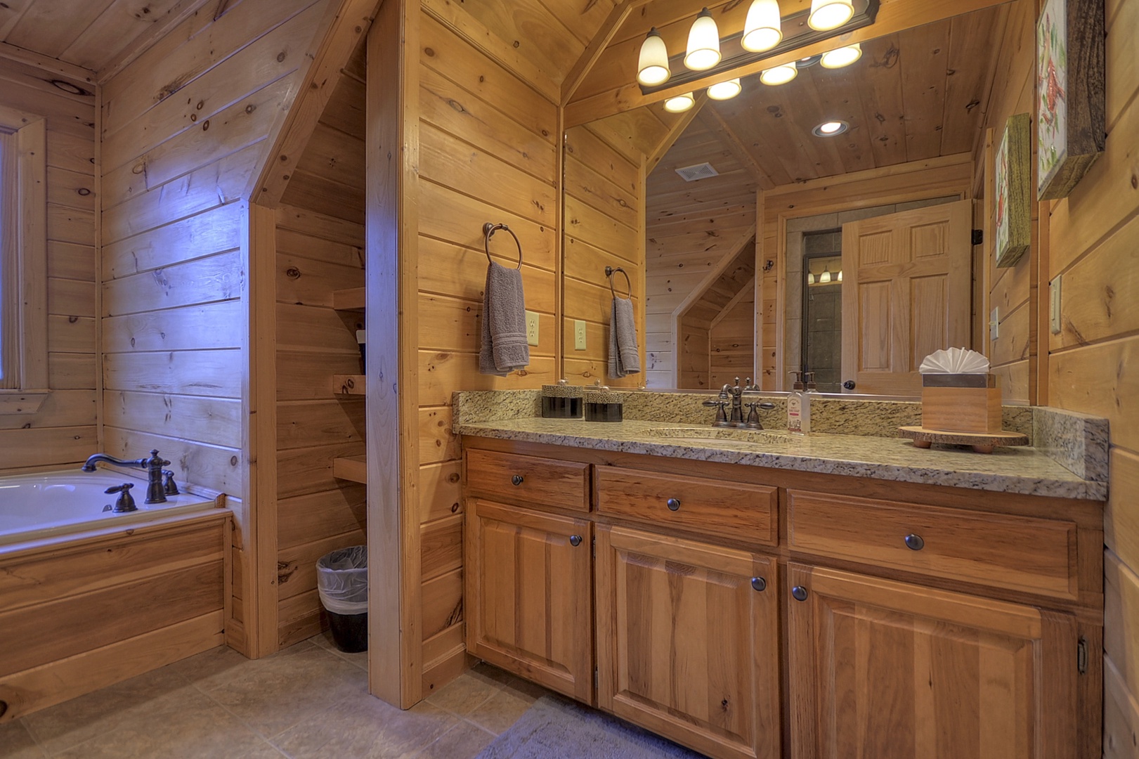Bearcat Lodge- Upper level attached bathroom with soaker tub and shower
