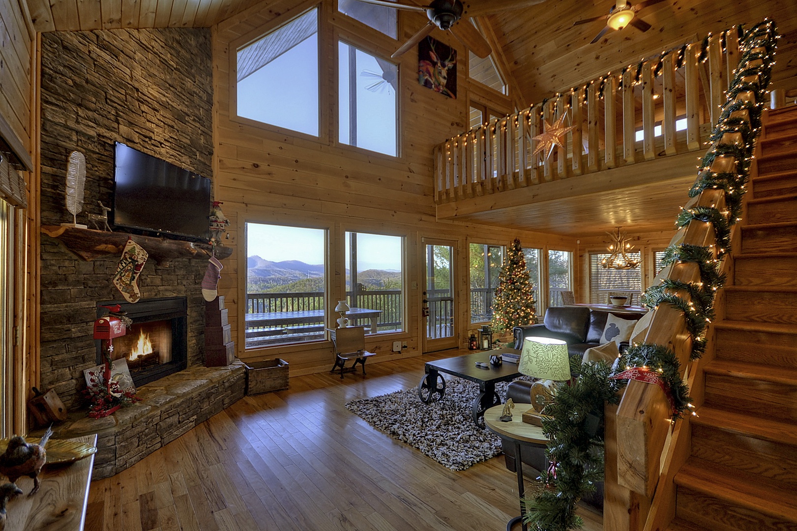 Bearcat Lodge - Entry level living room area with loft access