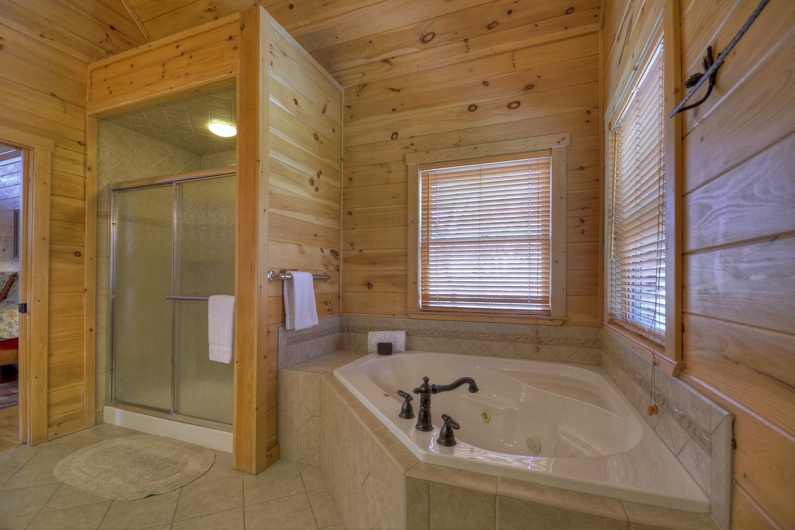 Blue Jay Cabin- A jetted tub off of the master bedroom