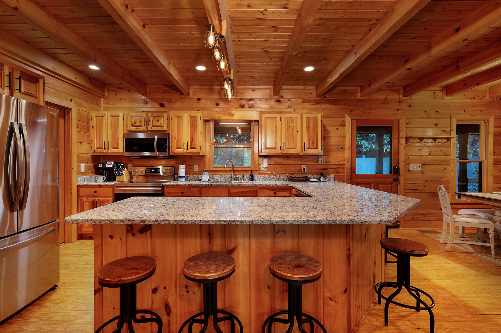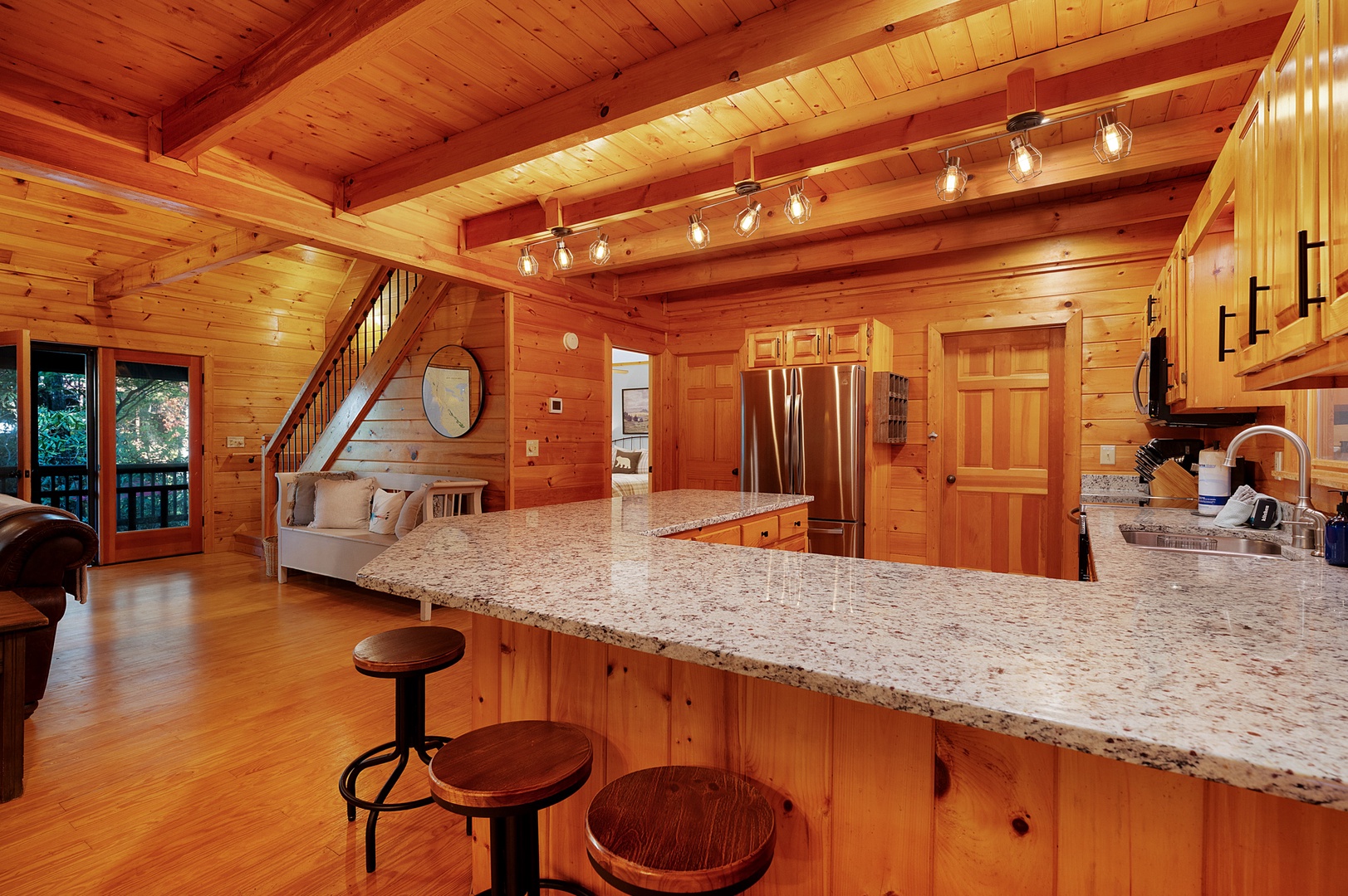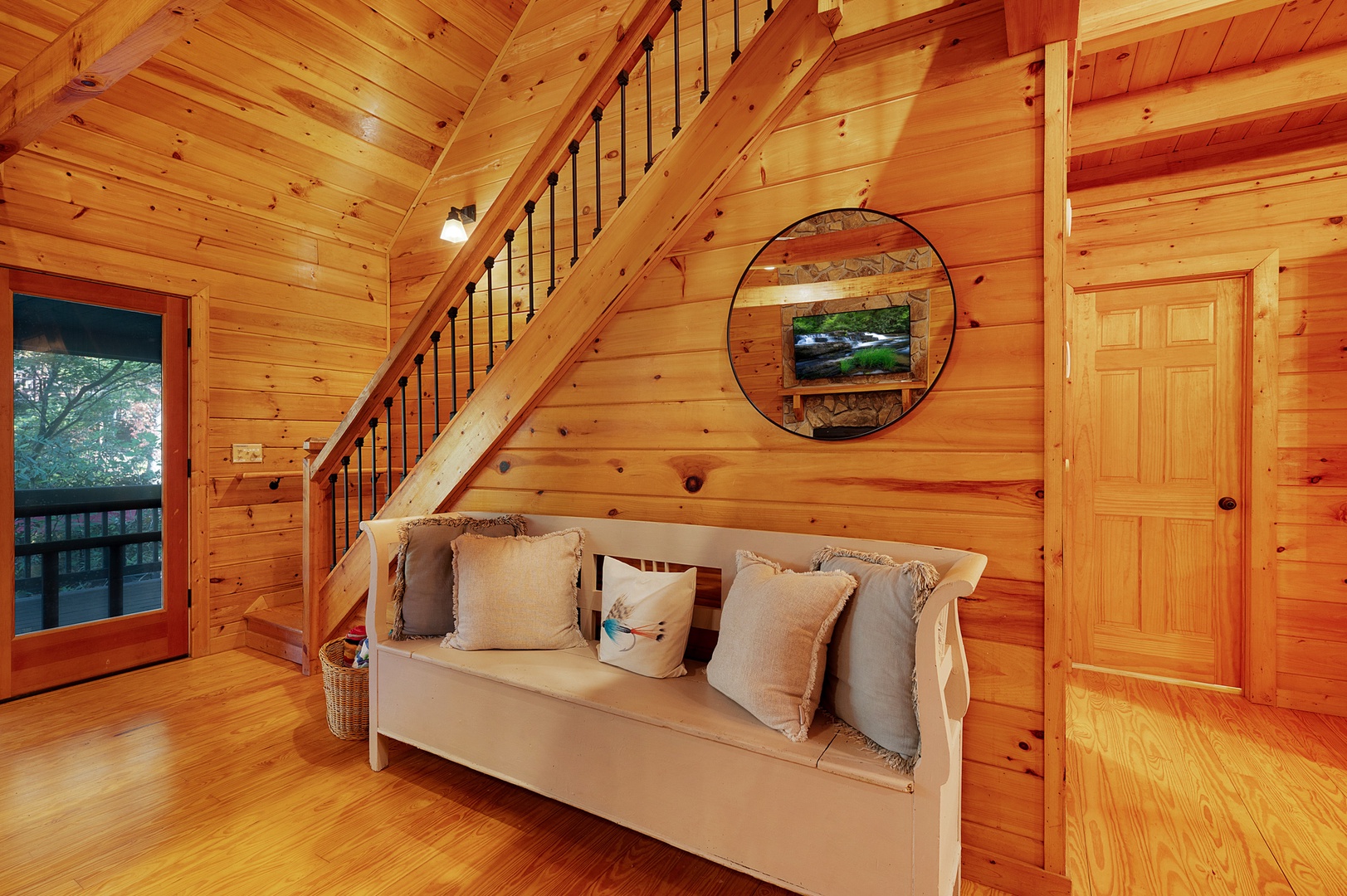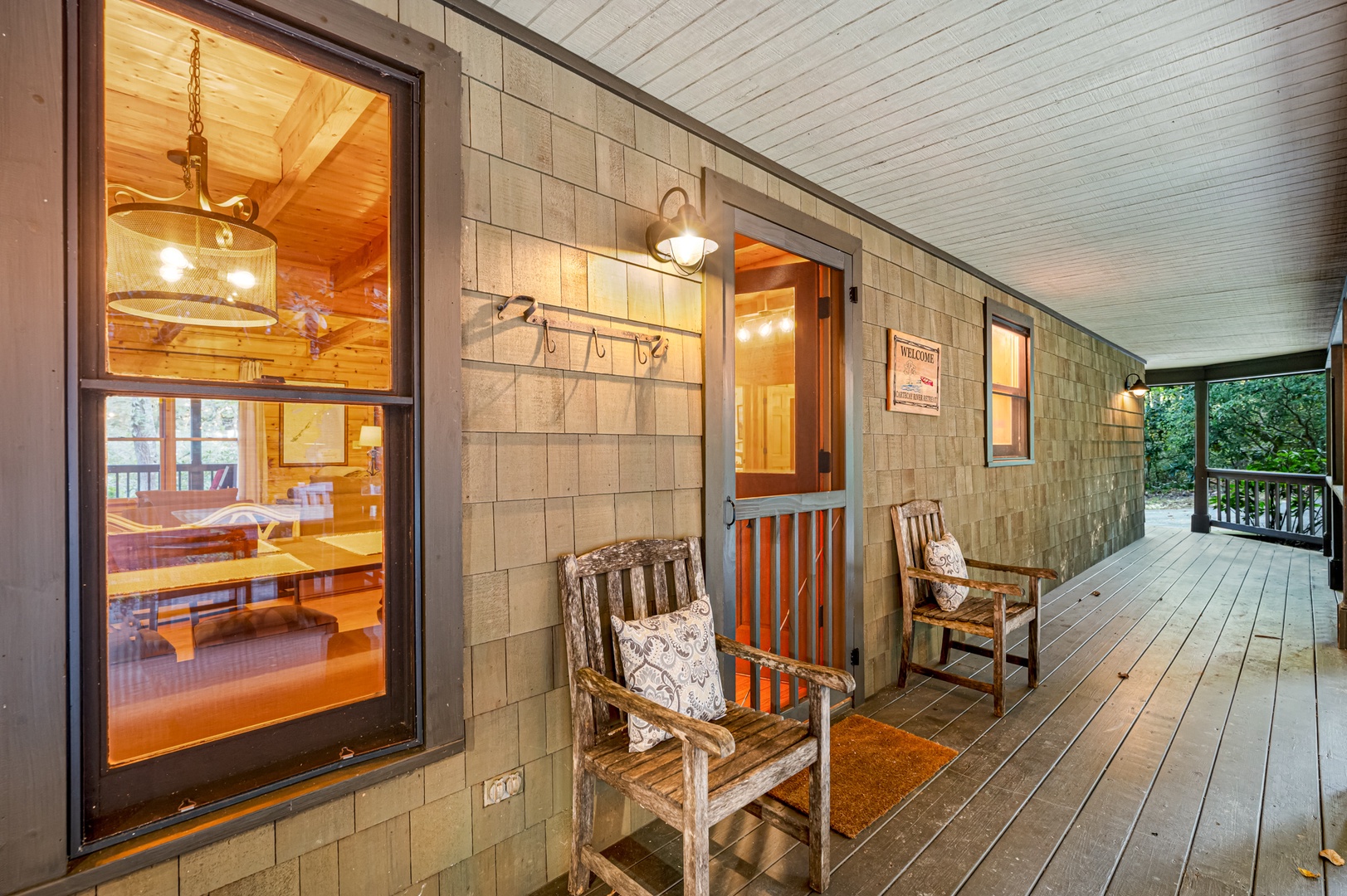 Riverside access, cozy living spaces, game room, and outdoor amenities like a hot tub, firepit, and river front deck.