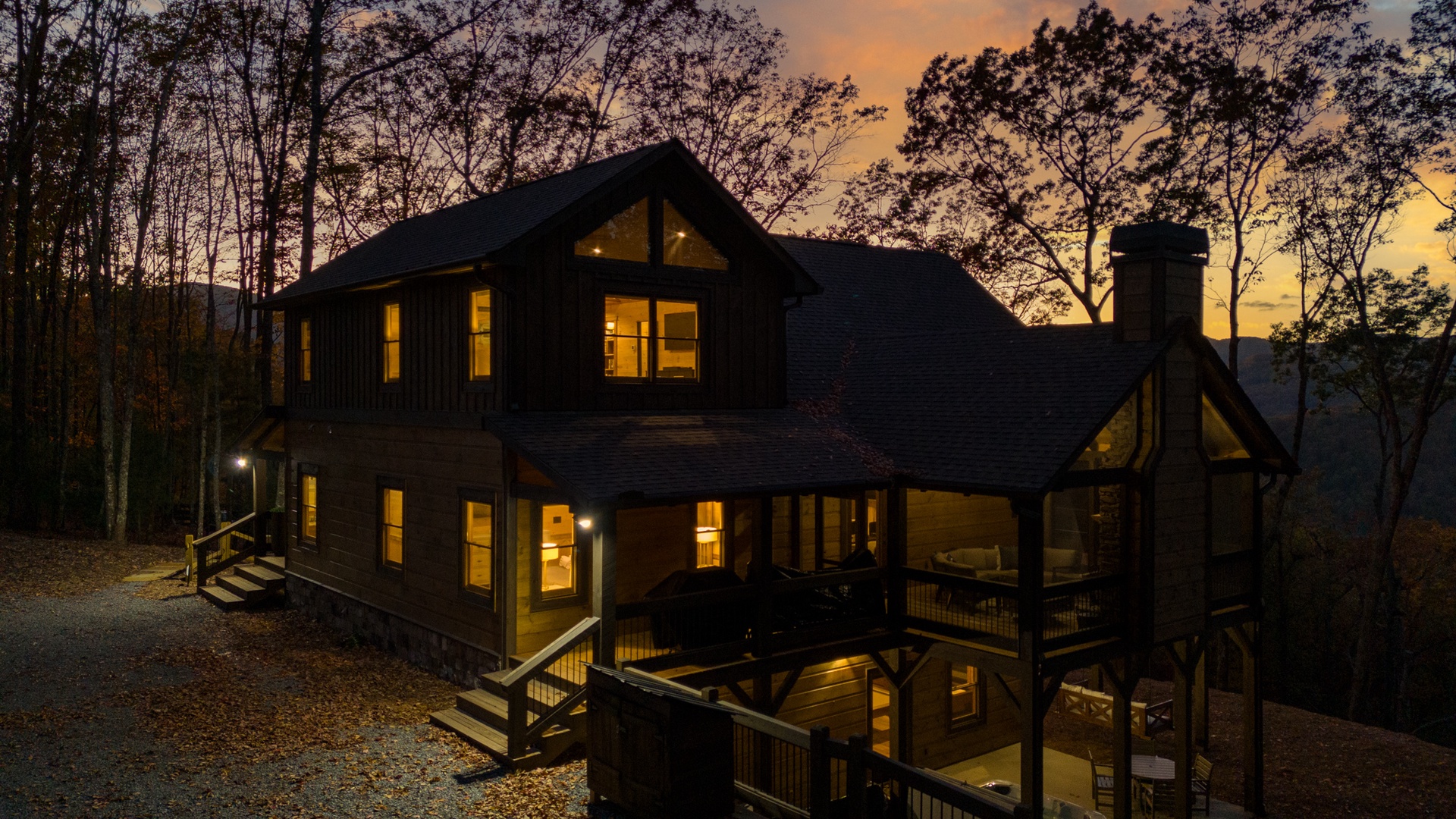 Eagle Ridge - Back of Cabin View at Dusk
