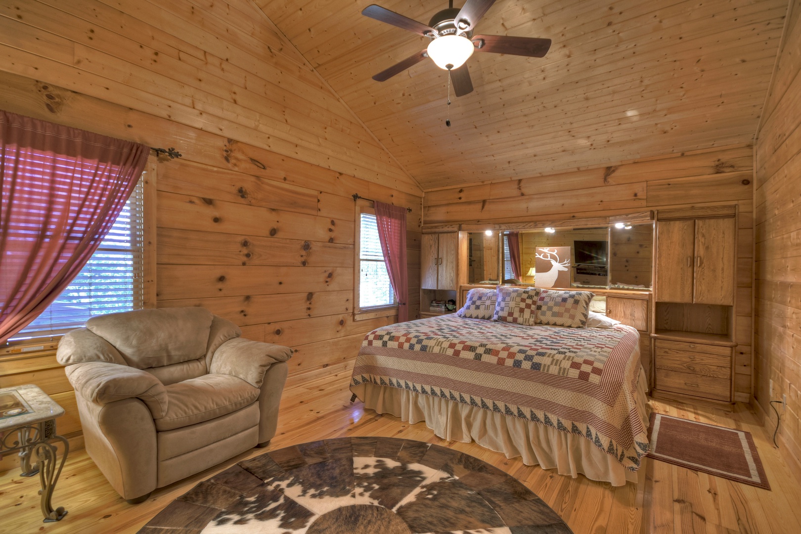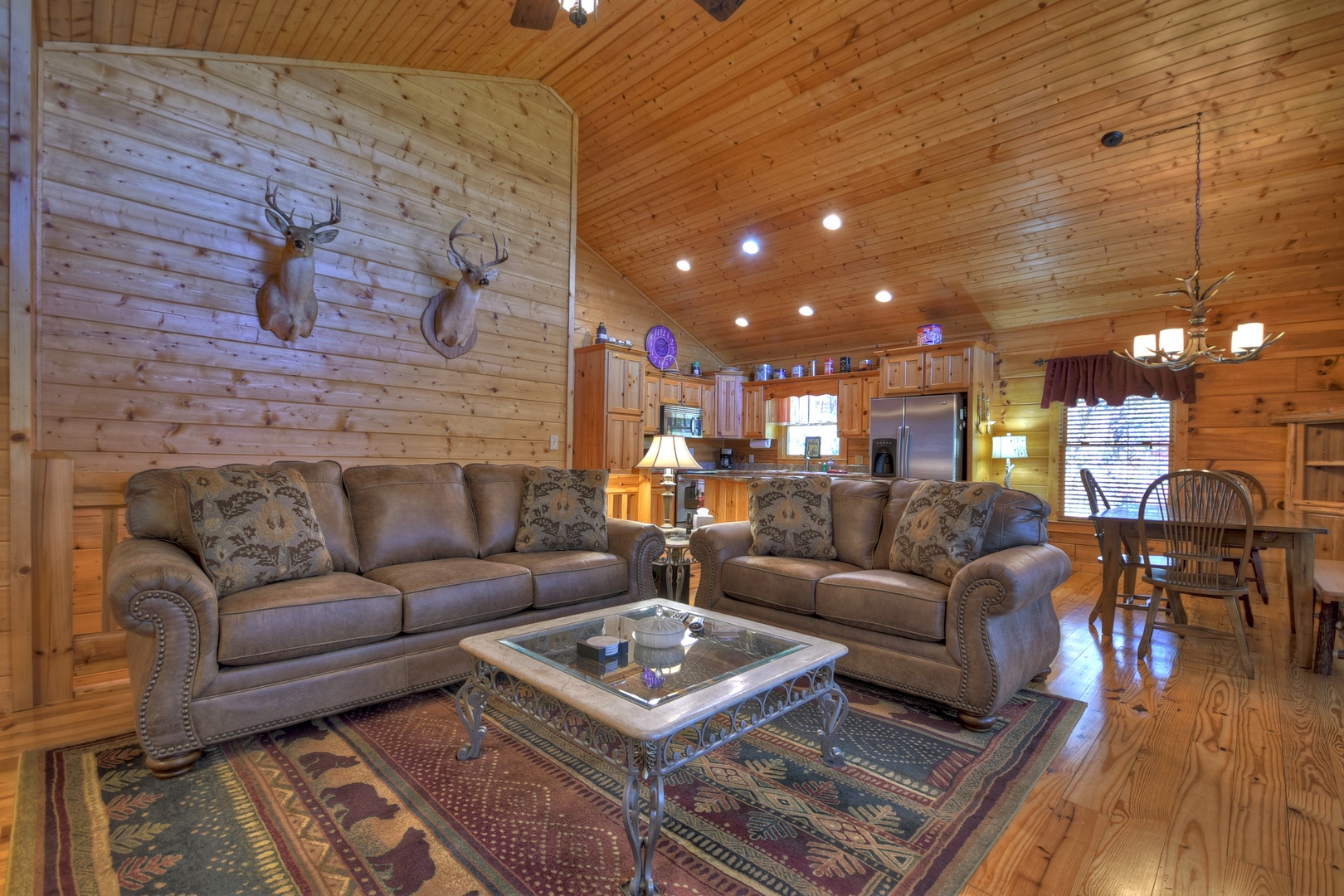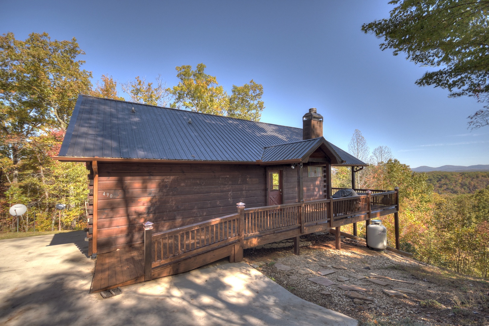 This dog-friendly cabin is situated at the end of the road with a walking trail next to the property. This cabin is also wheelchair friendly with a ramp built into the front deck entrance for easy access to the cabin.