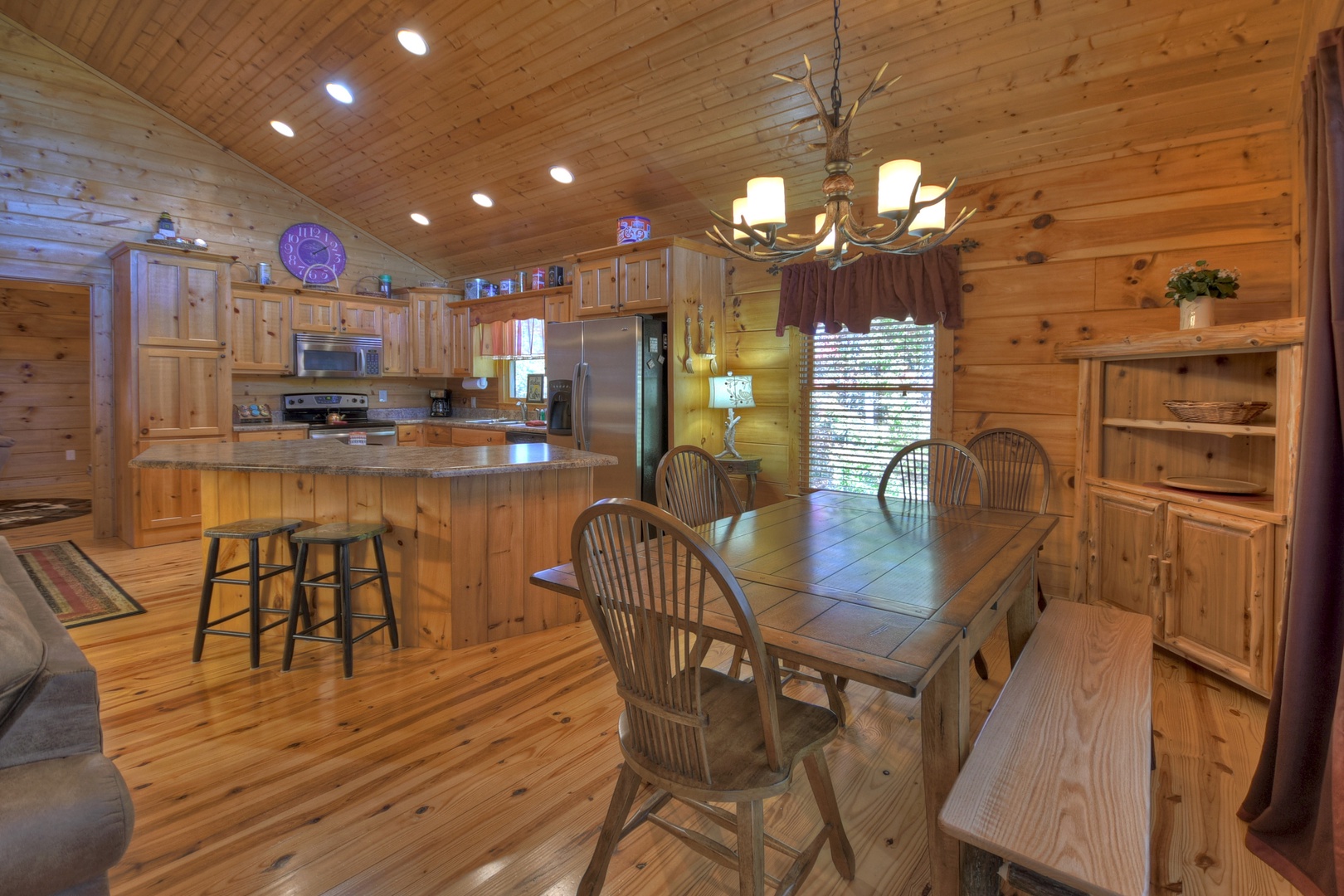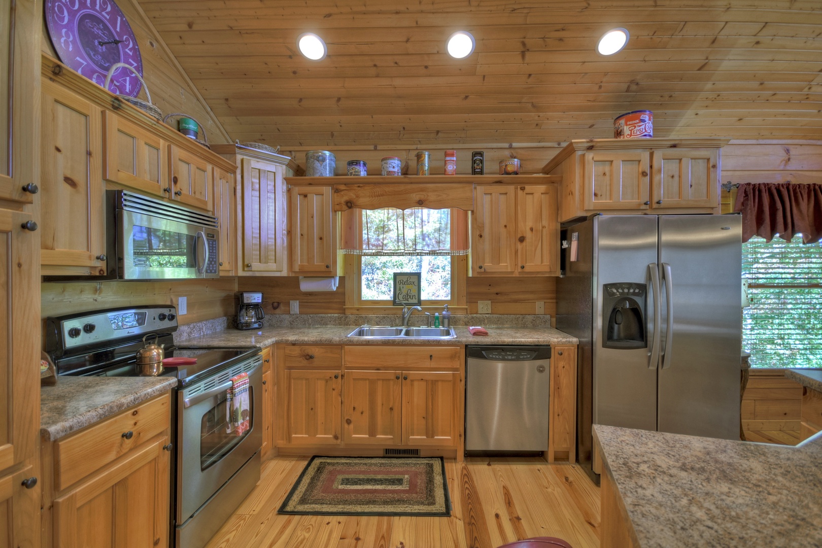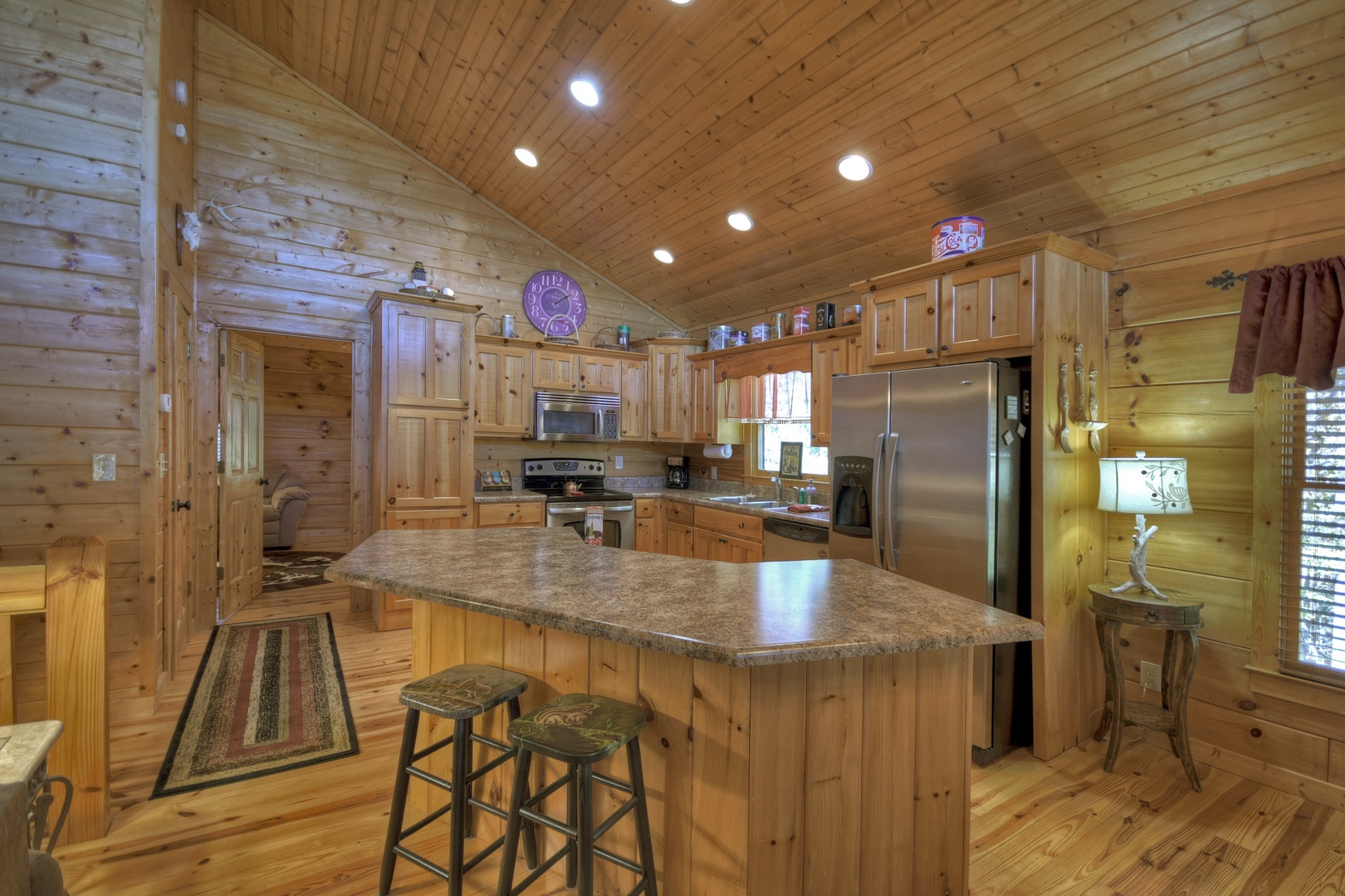 This dog-friendly cabin is situated at the end of the road with a walking trail next to the property. This cabin is also wheelchair friendly with a ramp built into the front deck entrance for easy access to the cabin.