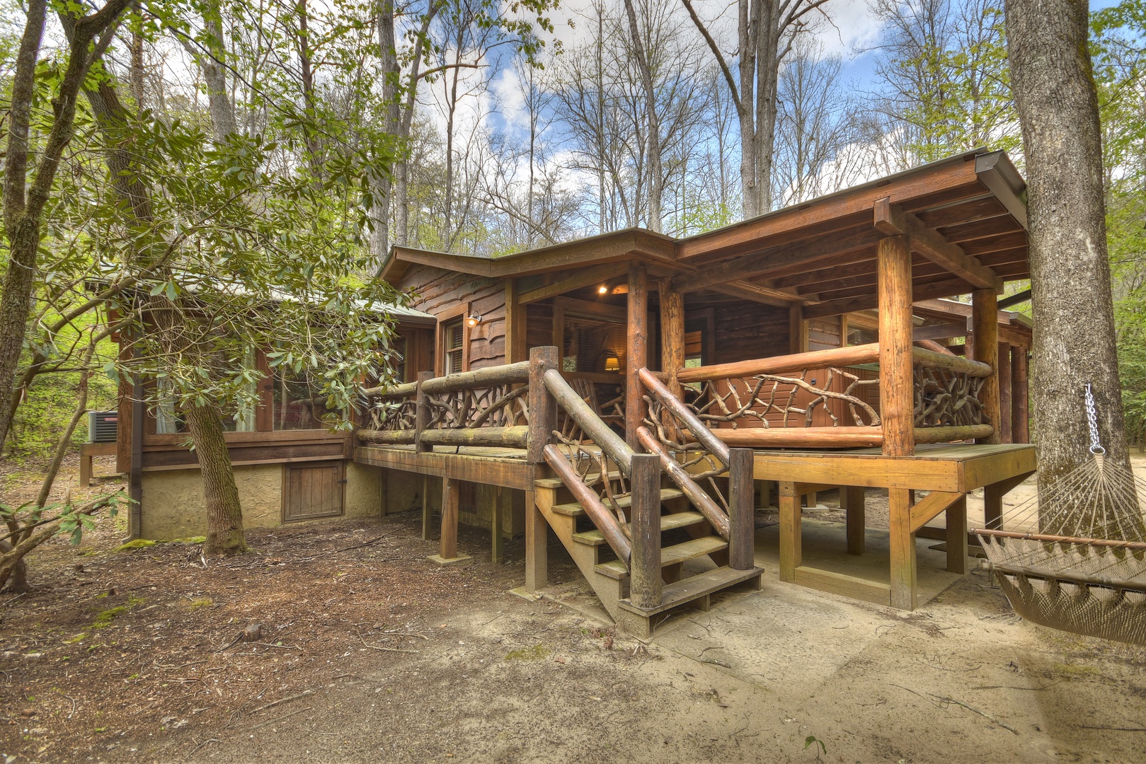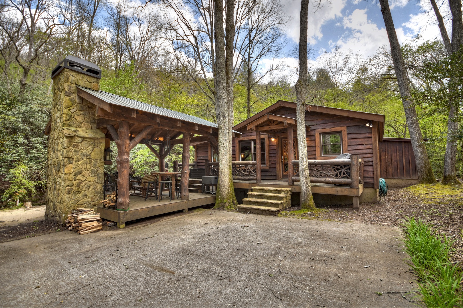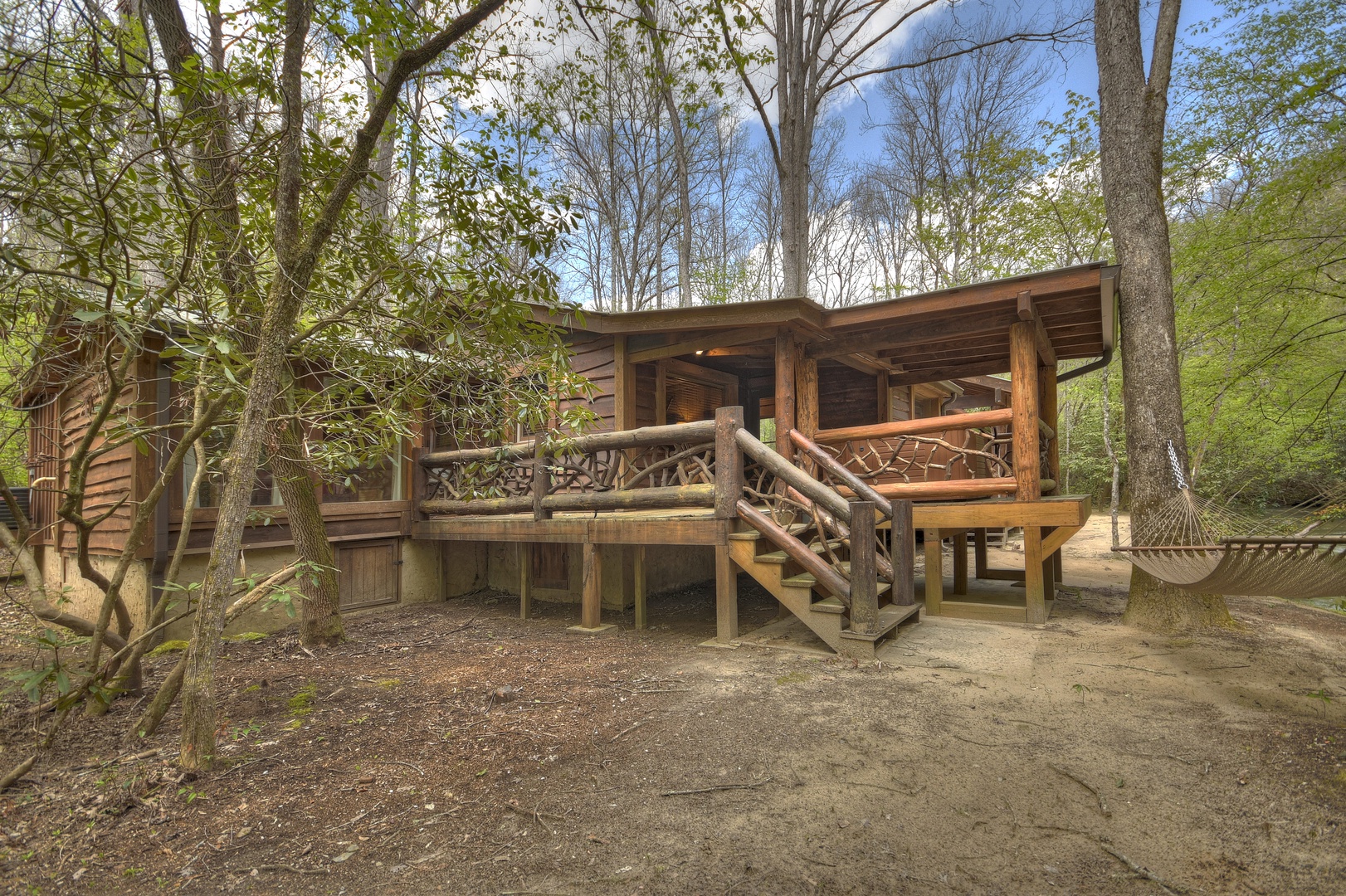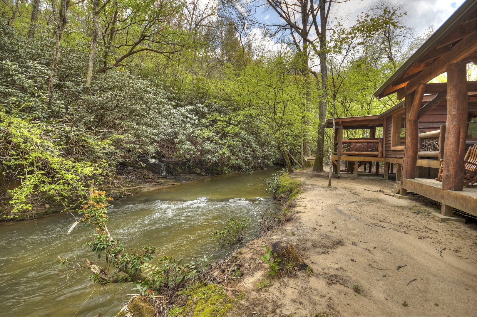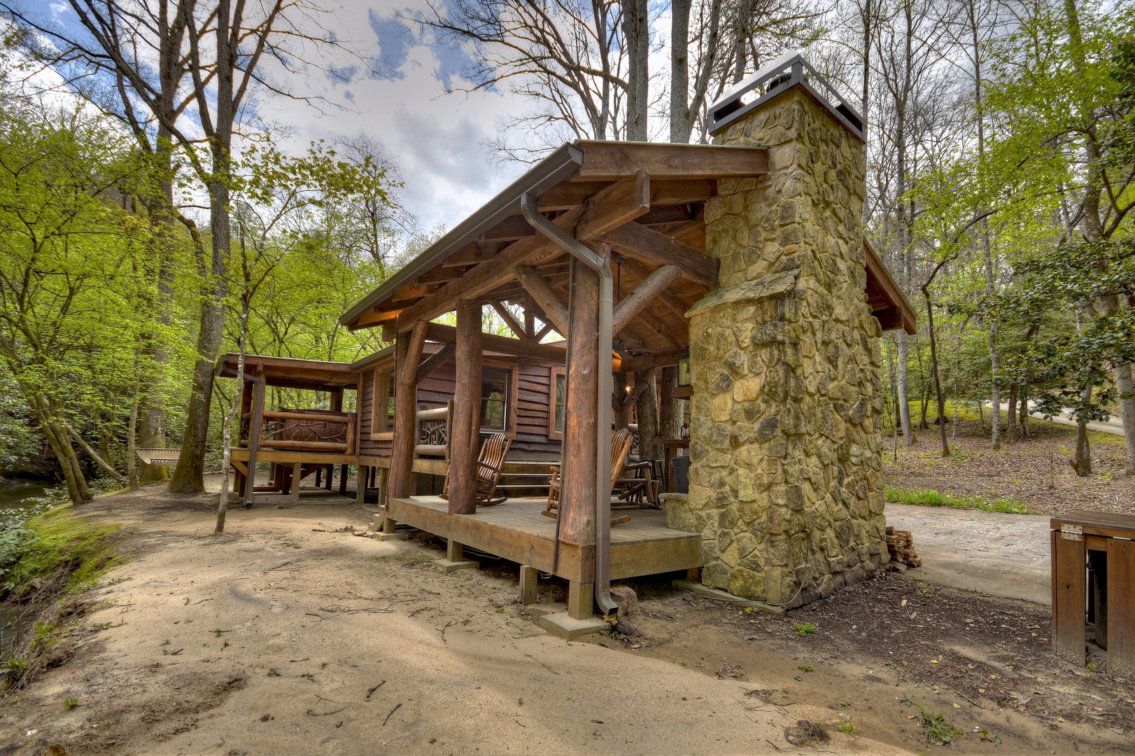 Hothouse Hideaway- Creek area with side view of the cabin
