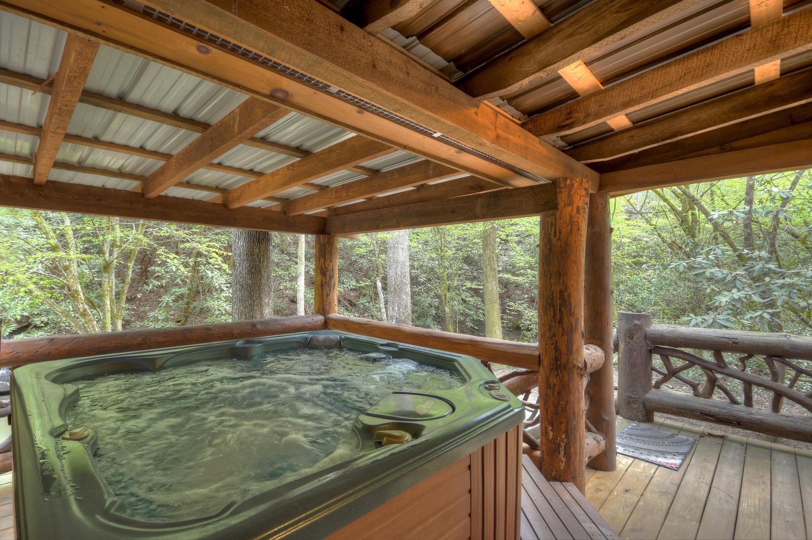 Hothouse Hideaway- Hot tub on the deck under cover