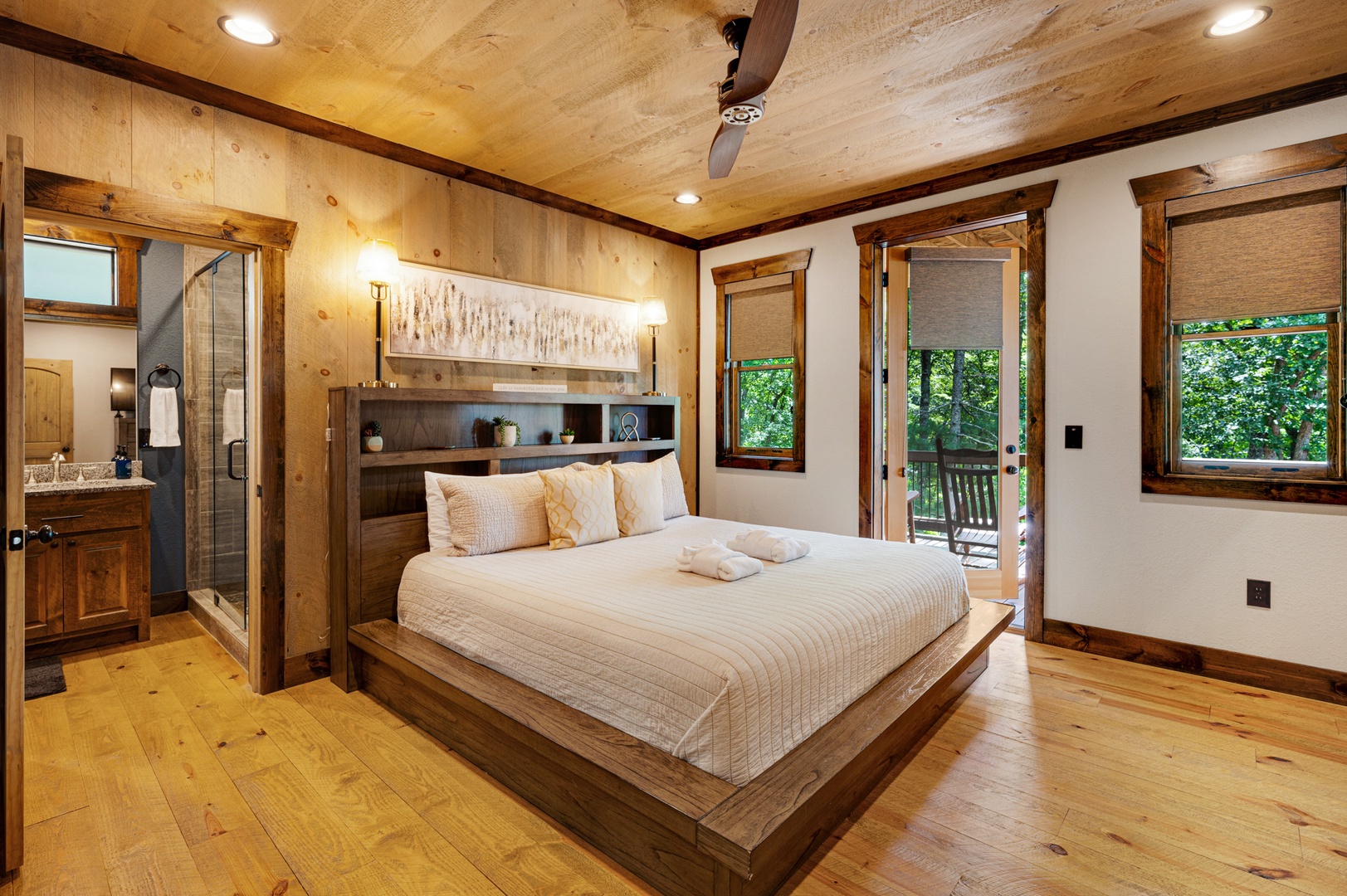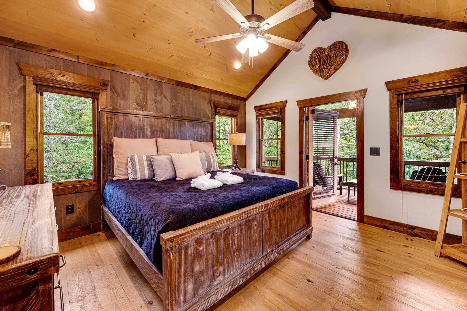 Mountain Echoes- Upper level master king suite with a private deck area