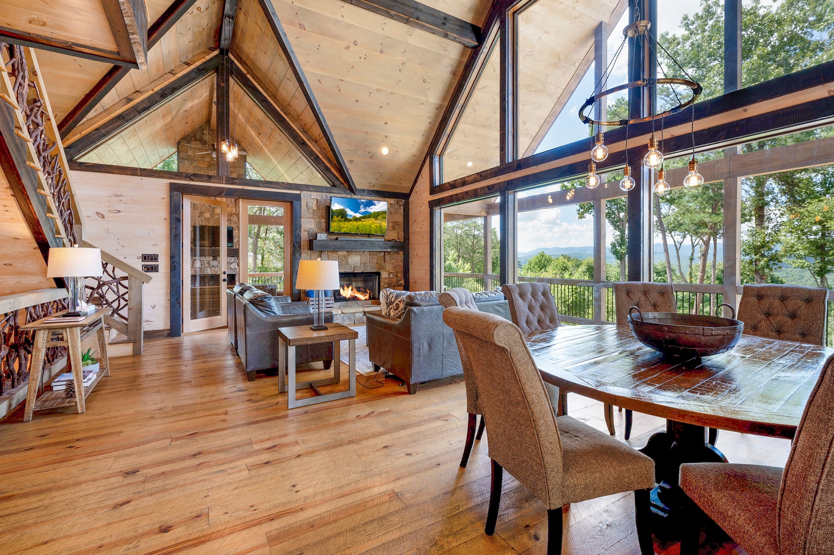 Mountain Echoes- Open floor space with living area and dining area