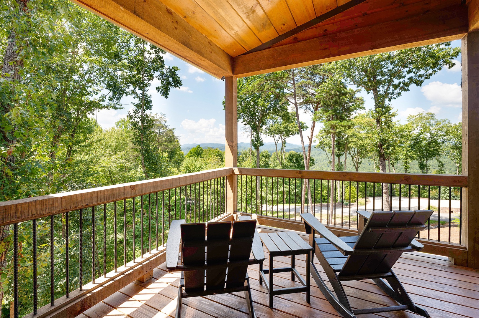 Mountain Echoes- Private balcony with forest views and outdoor seating