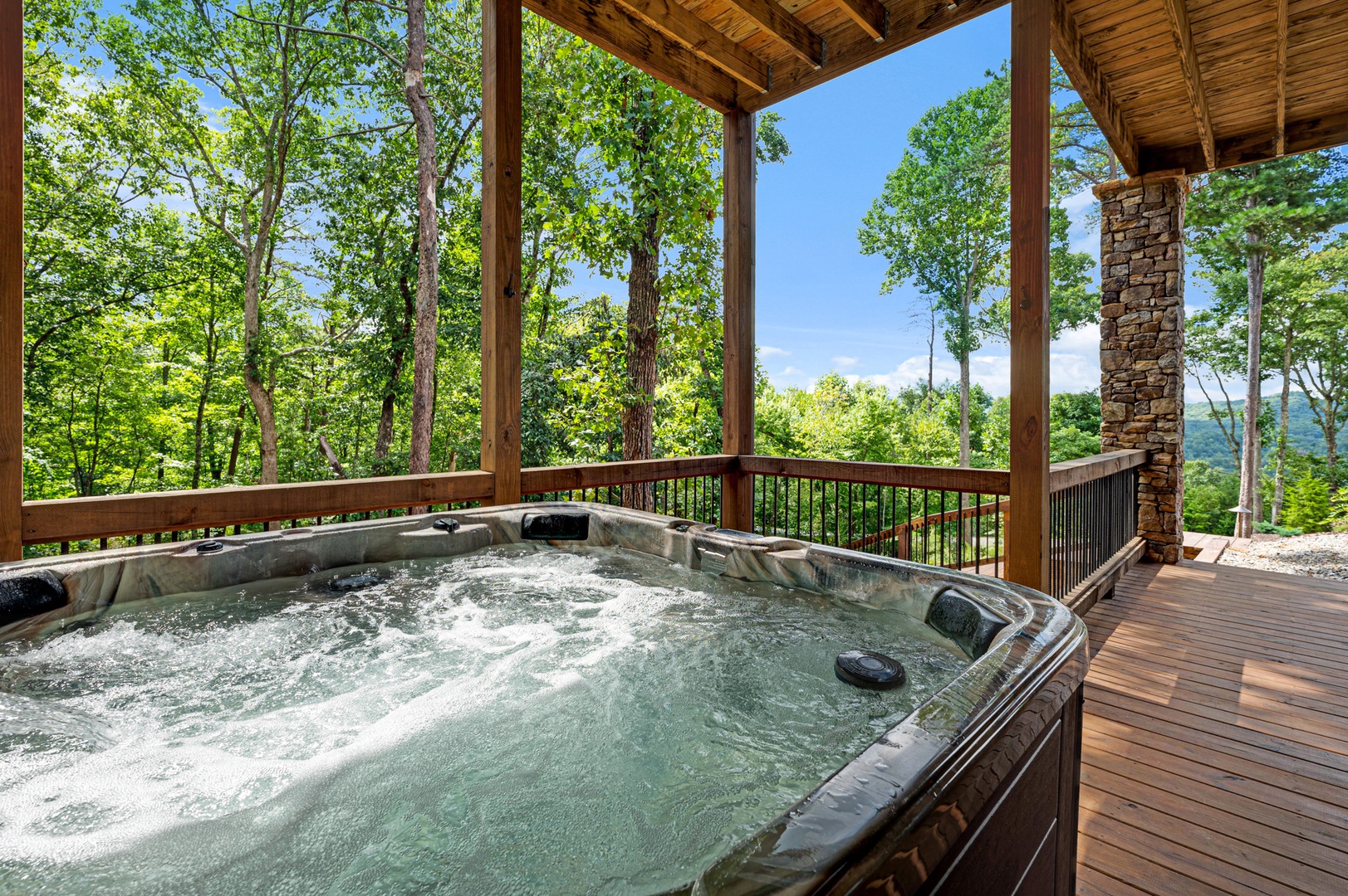 Mountain Echoes- Hot tub area on the deck