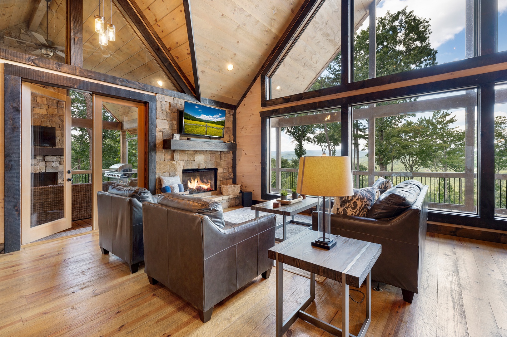 Mountain Echoes- Fireplace with outdoor seating