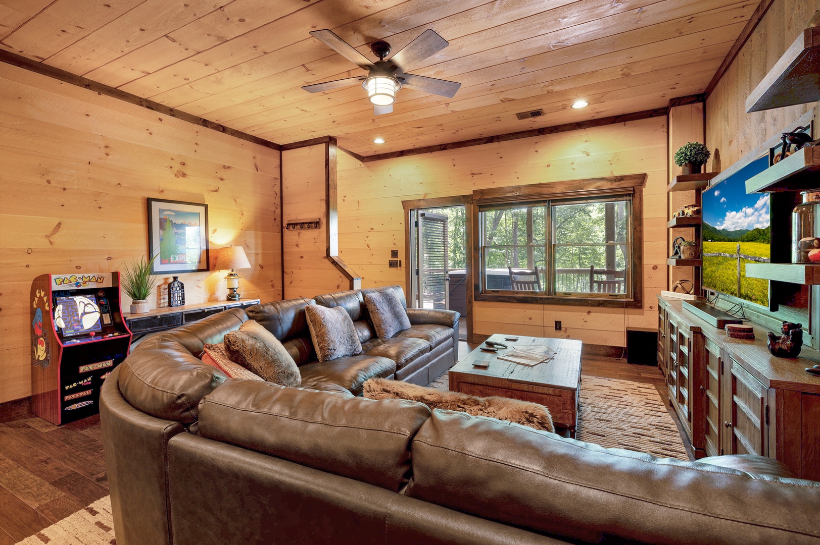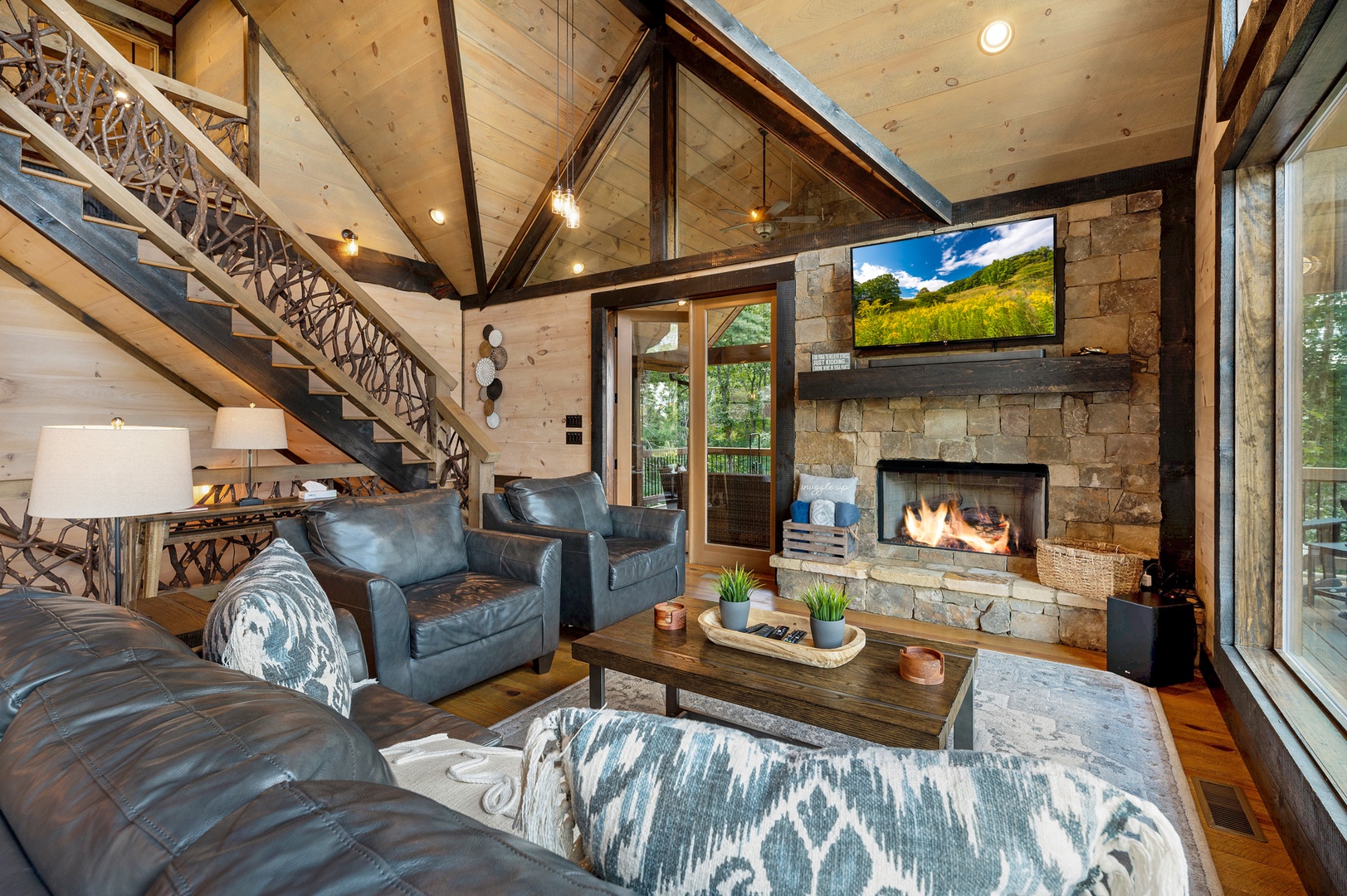 Mountain Echoes- Lower level seating area with deck access