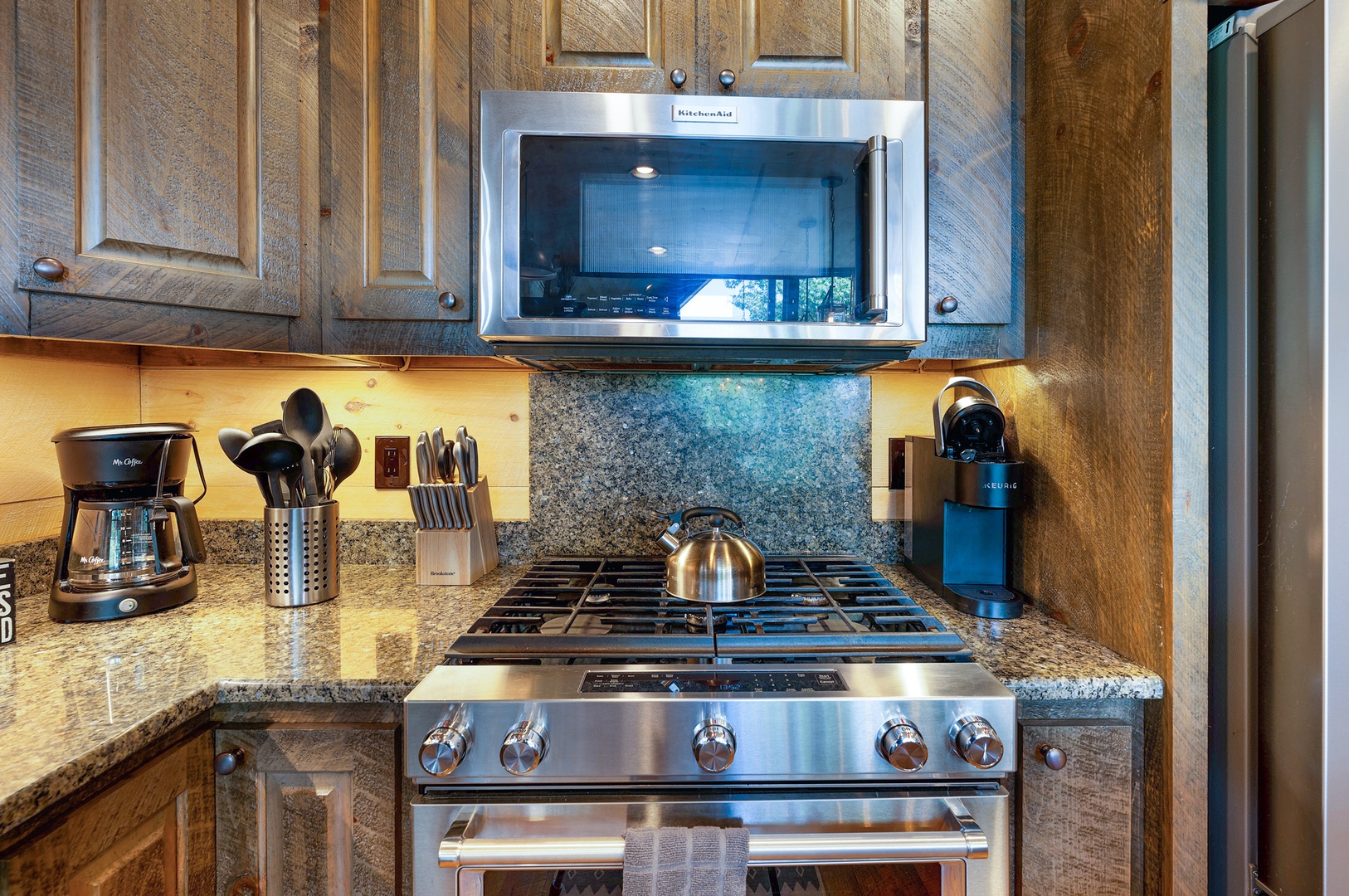 Mountain Echoes- Kitchen appliances, stove and microwave