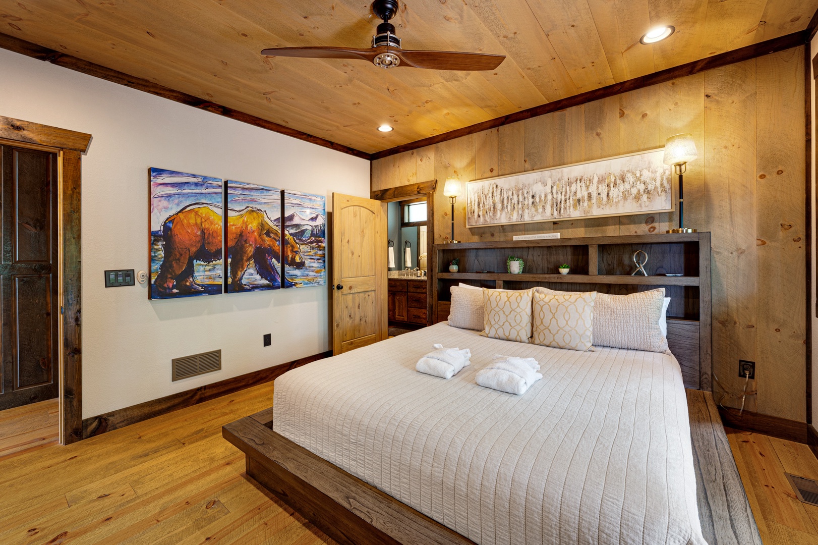 Mountain Echoes- Upper level king bedroom with bathroom access