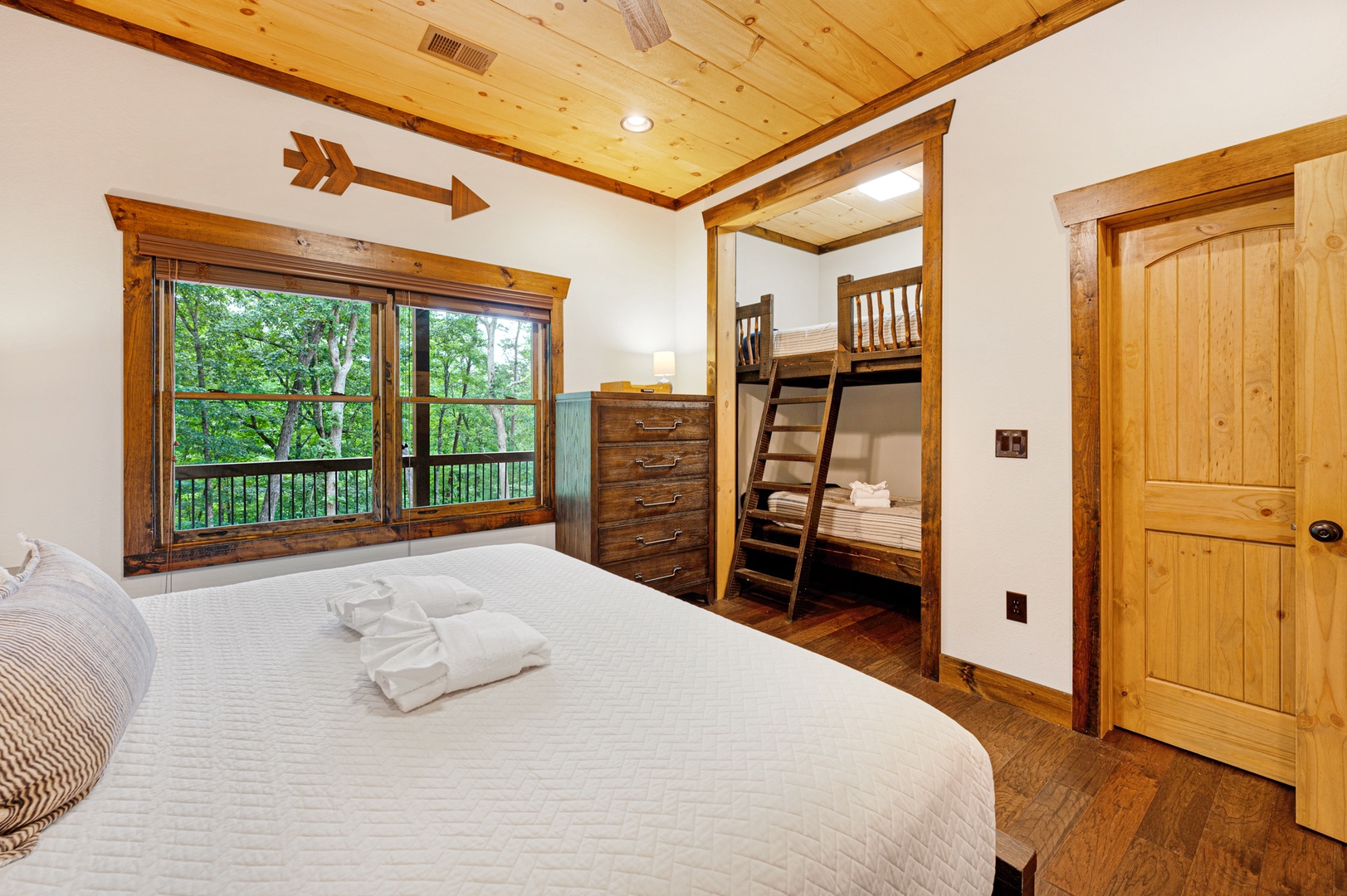 Mountain Echoes- Lower level king bedroom with bunk area