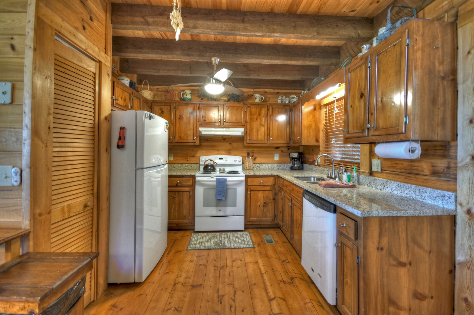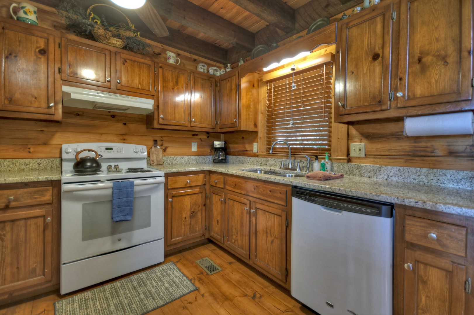 Ridgetop Pointaview- Full kitchen area with rustic ceiling beams