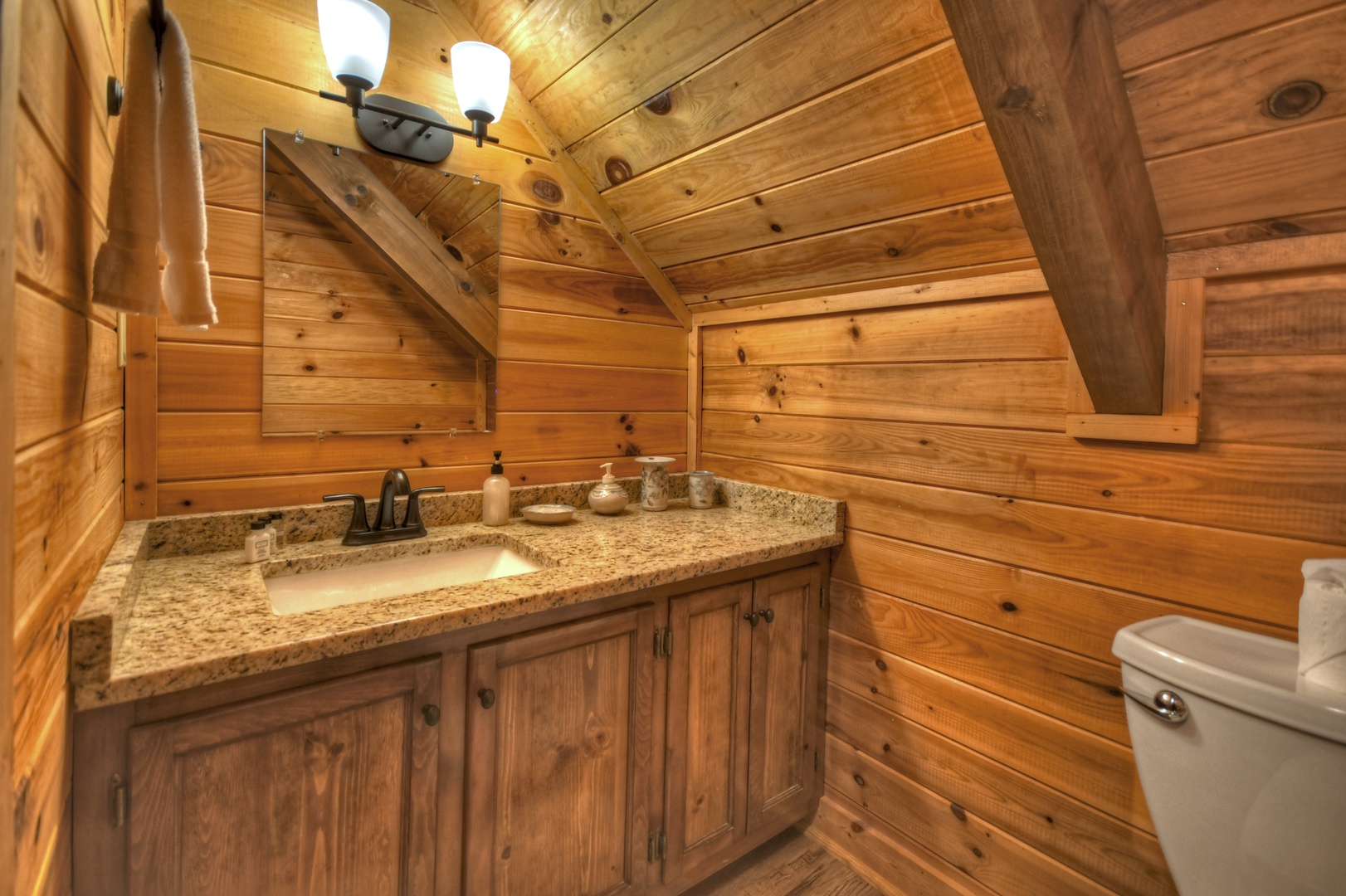 Ridgetop Pointaview- Entry level shared bathroom with a vanity sink, toilet and shower
