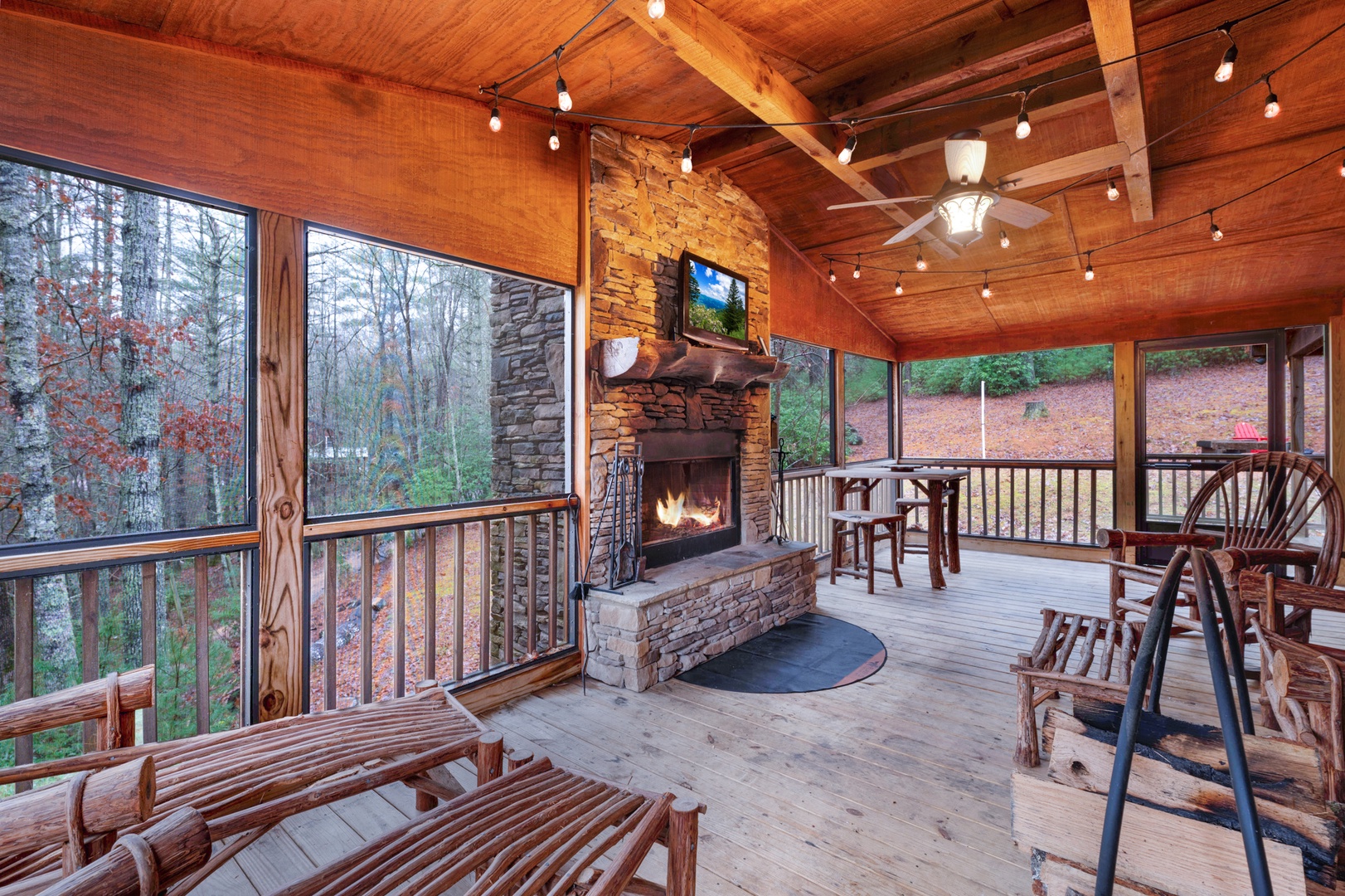 Storybook Hideaway: Screened Deck with Fireplace