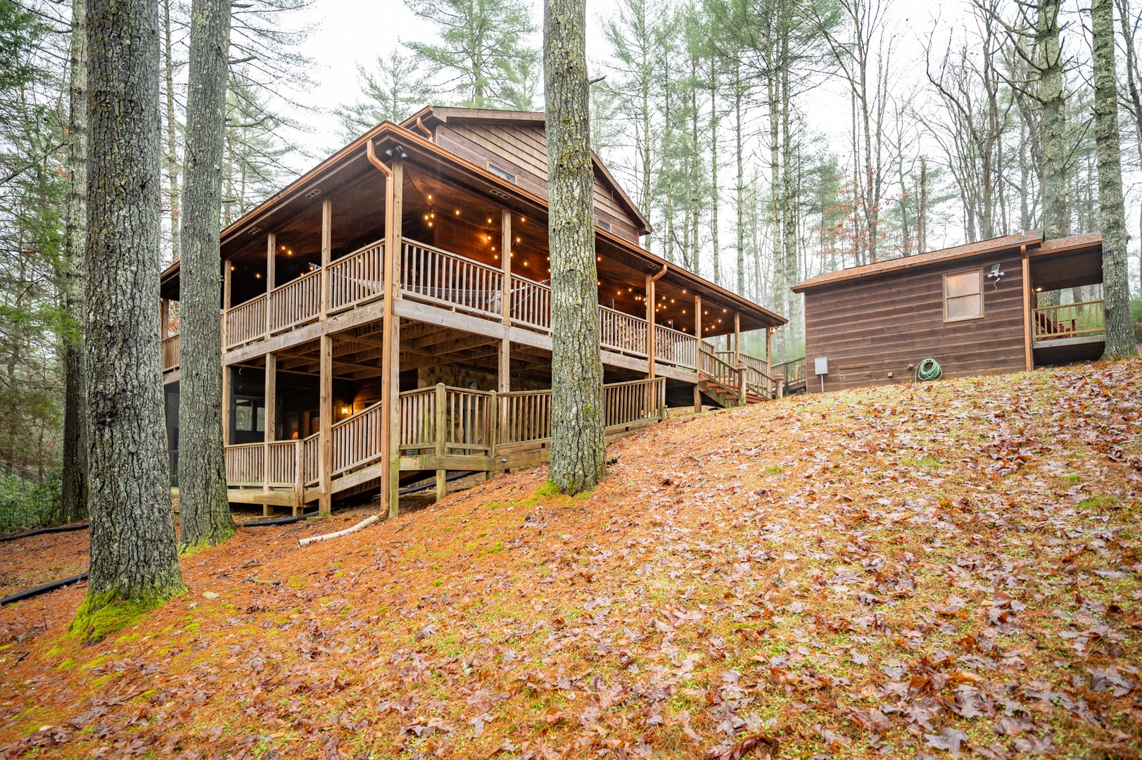 Storybook Hideaway: Wrap Around Deck towards Cottage