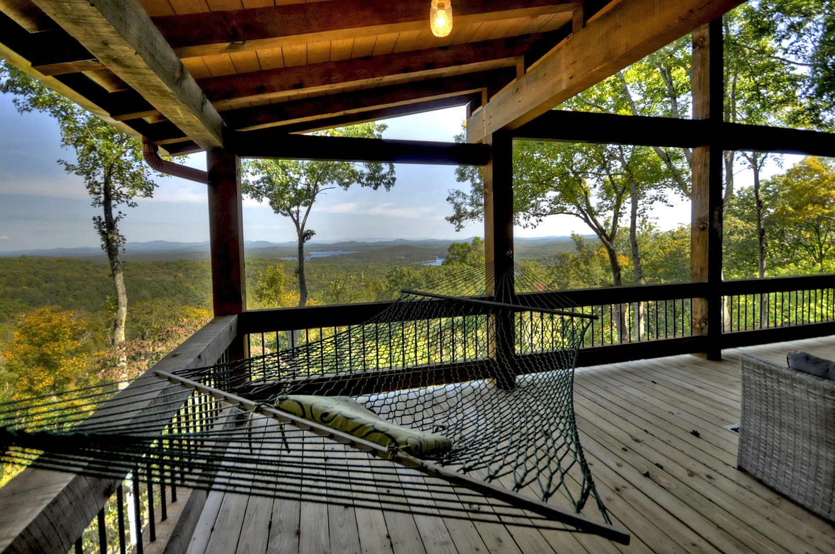 The Vue Over Blue Ridge- Outdoor seating area with hanging lounge bed