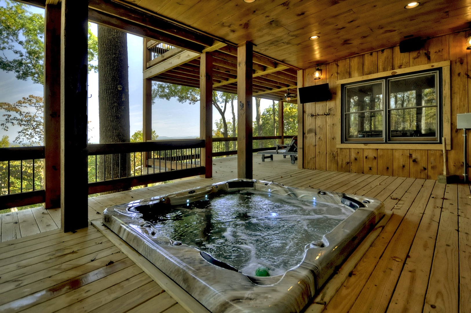 The Vue Over Blue Ridge- Long range view of the mountains with a hot tub