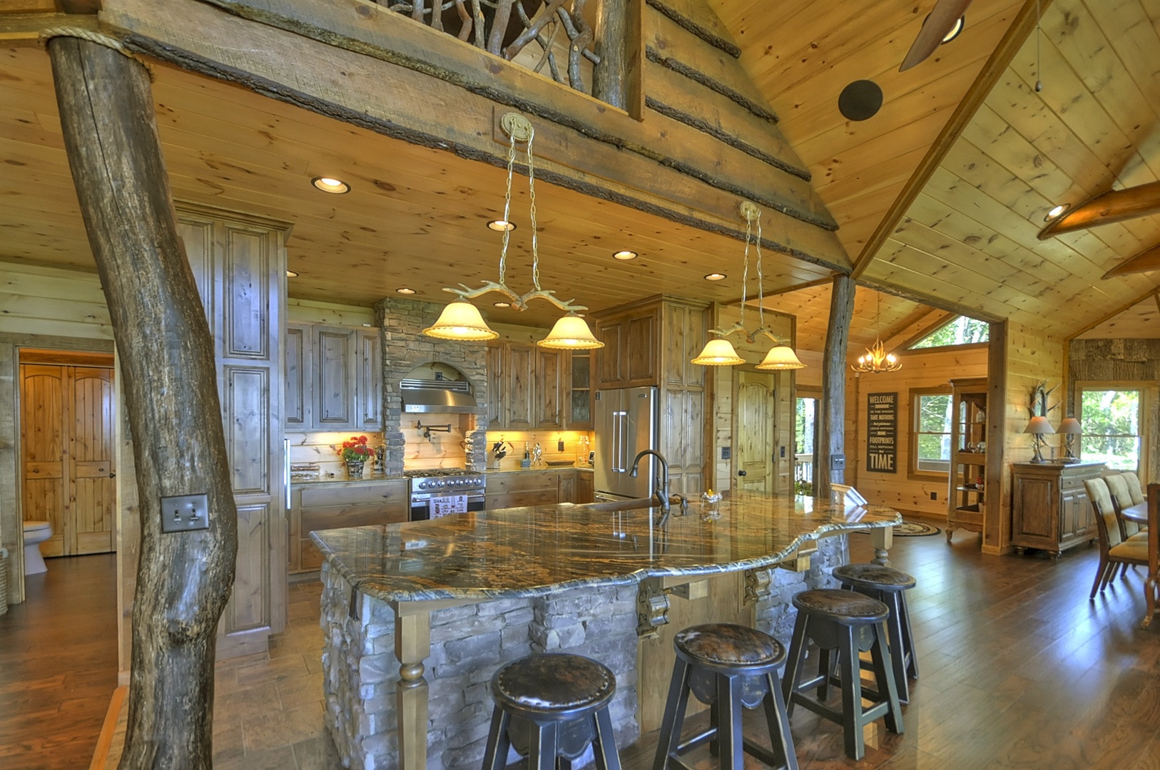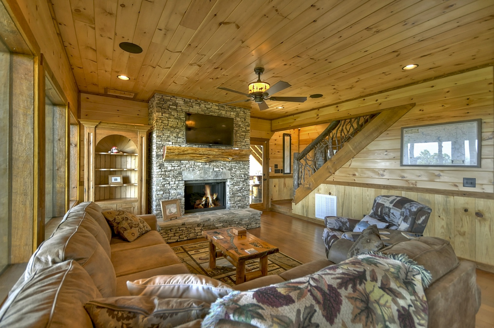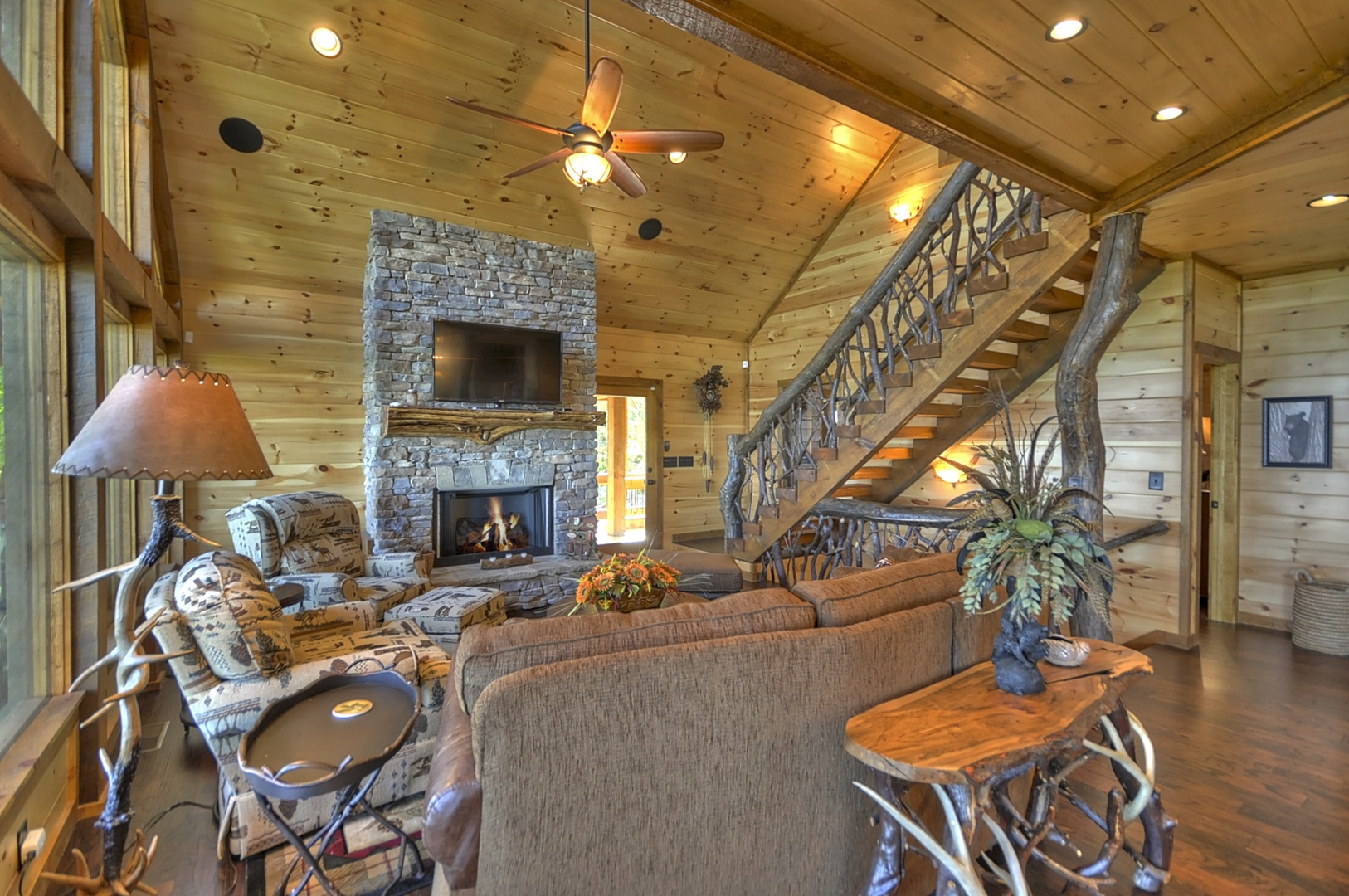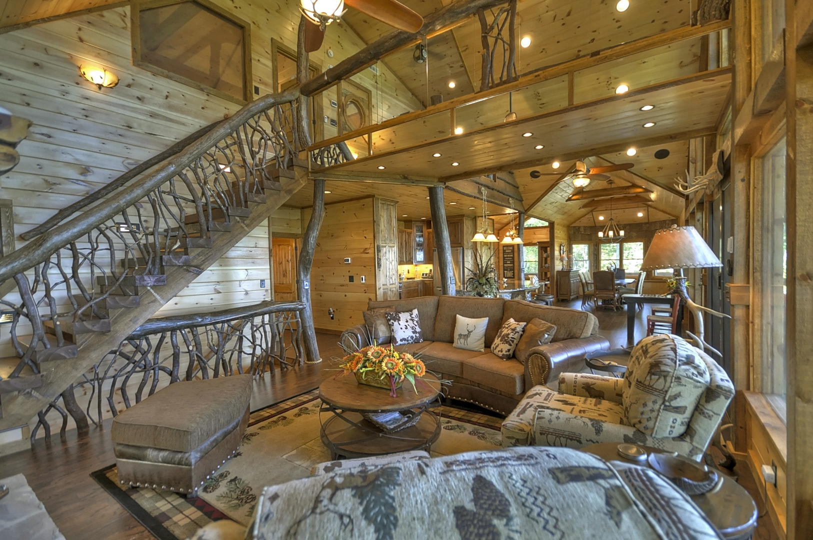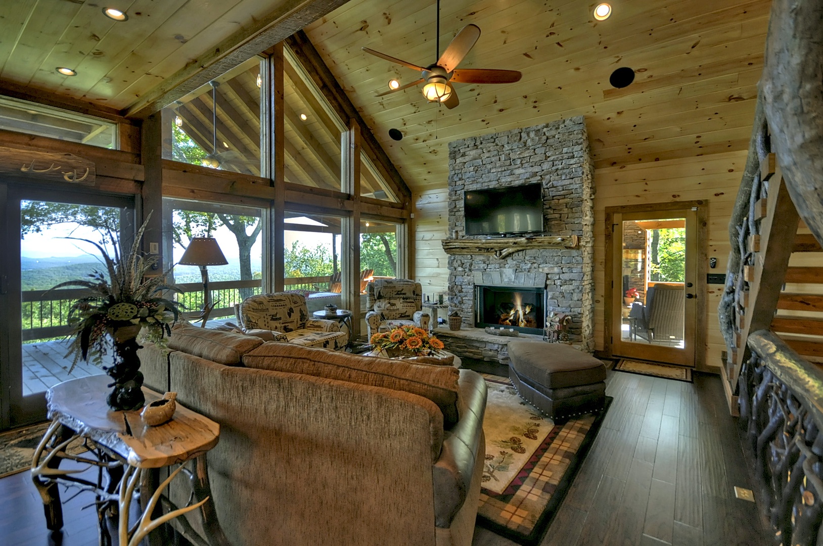 The Vue Over Blue Ridge- Full view of the open floor plan with rustic furnishings