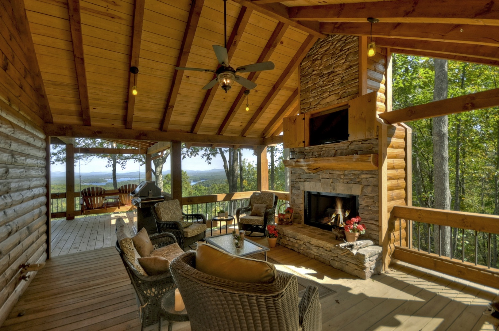 The Vue Over Blue Ridge- Outdoor seating with a fireplace