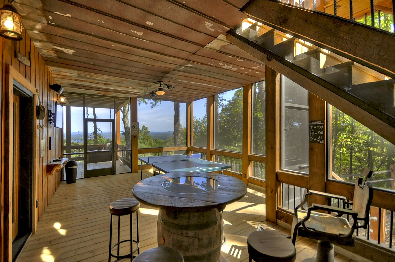 The Vue Over Blue Ridge- Screened in porch area with game area