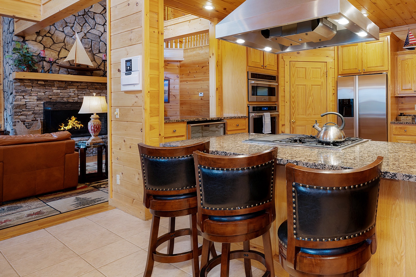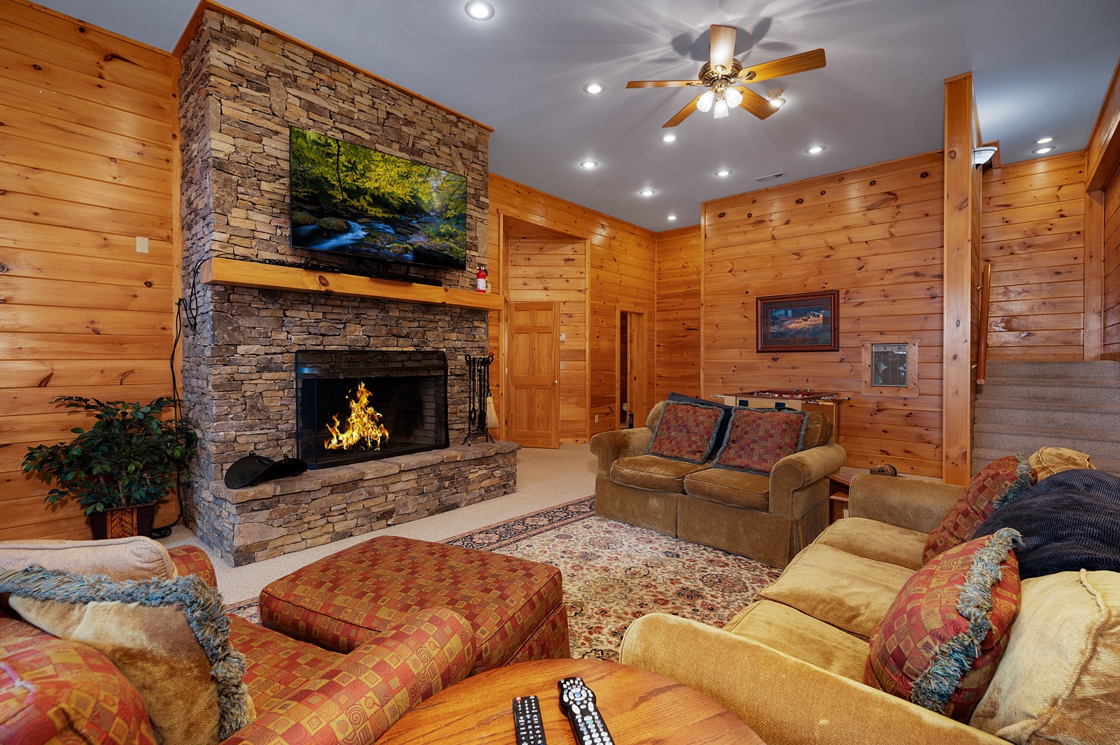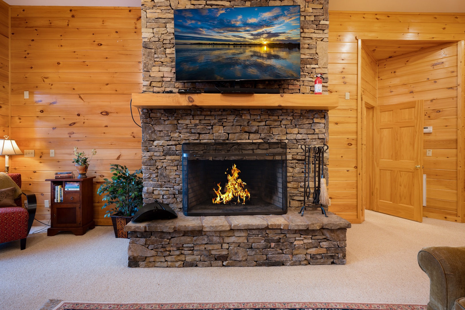 When In Rome - Lower level entertainment area fireplace